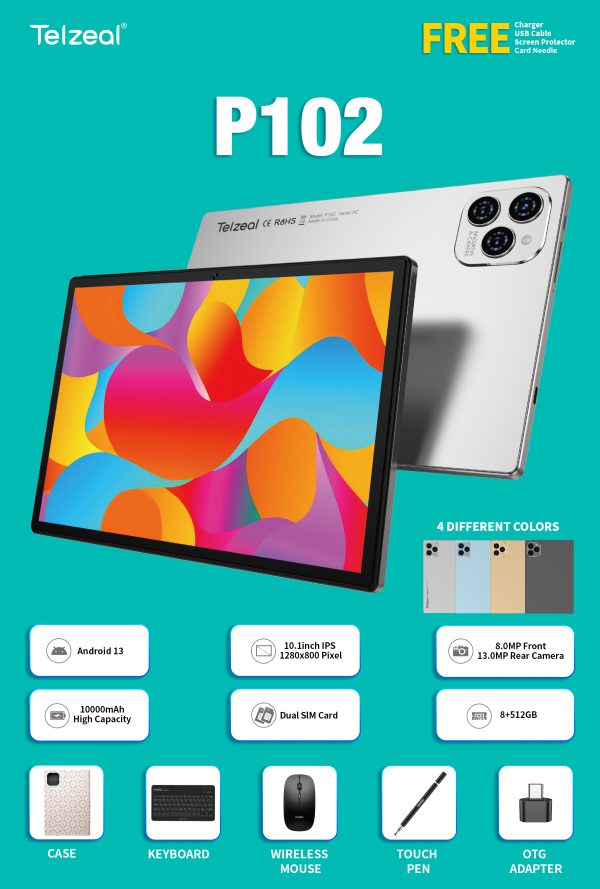 Price range: ۱۵,۷۰۰,۰۰۰ تومان through ۱۵,۸۹۰,۰۰۰ تومانتبلت تلزیل telzeal p102 |دو سیم کارته | صفحه 10.1 اینچ | رم 8 حافظه 512